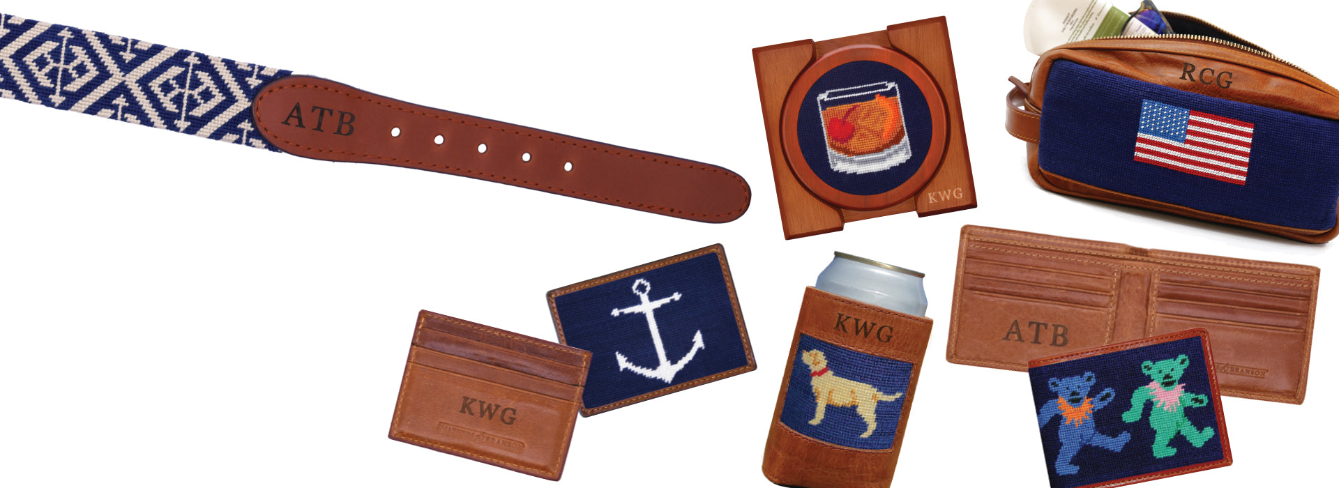 Personalize your favorite accessories or belt with our monogram options. Choose from different styles and colors to design a made to order product special to you! Visit our monogram shop to see our full offerings.
