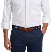 Show off your favorite things in life with our iconic needlepoint belts! As elegant as they are casual, our belts are the perfect accessory to help you stand out from the crowd. Our 100% hand-stitched belt measures 1.25" in width and is lined with full grain, Italian leather and is finished with a solid brass buckle.